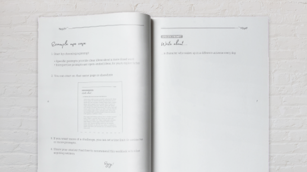 You'll get a printable PDF workbook, filled with 50 Creative Writing prompts